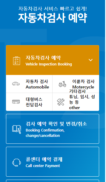 이후 예약을 진행하면 됩니다. 다만, 자동차검사 예약은 평일만 가능합니다. 주말은 오는 순서대로 선착순 검사를 하기 때문에 아침일찍 서둘러서 가지 않으면 매우 긴 대기줄을 만날 수 있습니다.