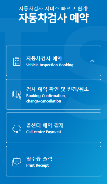 이후 예약을 진행하면 됩니다. 다만, 자동차검사 예약은 평일만 가능합니다. 주말은 오는 순서대로 선착순 검사를 하기 때문에 아침일찍 서둘러서 가지 않으면 매우 긴 대기줄을 만날 수 있습니다.