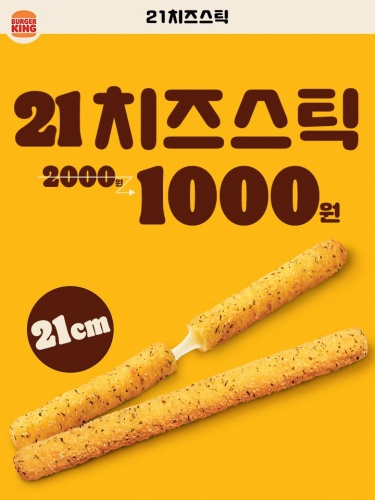 21센티미터 겉바속촉 치즈스틱이 단돈 1000원인 프로모션을 진행합니다. 1센티미터에 50원 정도 되겠습니다.