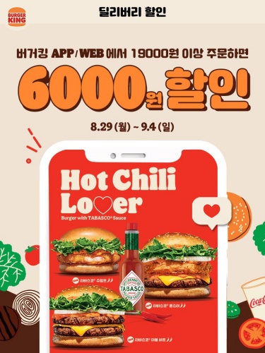 버거킹 앱과 웹에서 19000원 이상 주문하면 6000원을 할인해 주는 행사입니다. 버거킹 앱 설치하시면 쿠폰을 많이 나눠줍니다. 카카오톡 플러스친구 채널에서도 많이 주지만, 앱에서도 동일한 쿠폰은 기본이고, 회원 전용 쿠폰이 추가되어 있습니다.