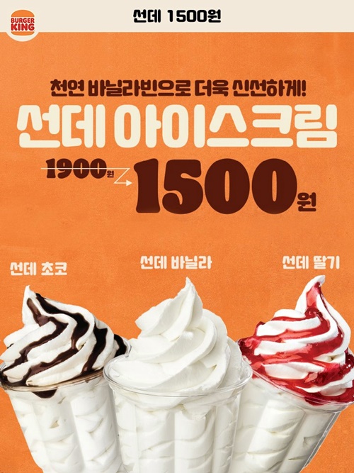 더운 여름을 맞이해서 시원하게 지내시라고 2가지 메뉴를 할인합니다. 아이스 아메리카노는 단돈 1000원에, 선데 아이스크림은 단돈 1500원에 드실 수 있어요.